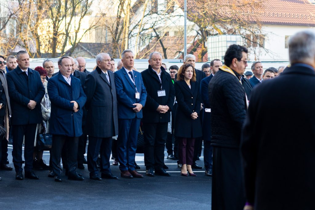 Noul pavilion al Spitalului Clinic Județean de Urgență Bistrița, investiție finanțată prin Planul Național de Redresare și Reziliență, cu cofinanțare din partea Consiliului Județean Bistrița-Năsăud, a fost inaugurat vineri, 19 decembrie, în prezența a numeroși oficiali, între care: ministrul sănătății, Alexandru Rogobete, comisarul european Roxana Mînzatu – vicepreședinte executiv al Comisiei Europene, deputatul Bogdan Gruia Ivan – ministrul Energiei, consilierul prezidențial Cristian Roșu, deputatul Daniel Suciu, Marcel Boloș – directorul ADR Nord-Vest, Horațiu Moldovan – președintele Casei Naționale de Asigurări de Sănătate, deputatul Alexandru Rafila – președintele Comisiei pentru sănătate și familie din Camera Deputaților, deputatul Adrian Câciu, senatorul Mircea-Cristian Nicula, președintele Consiliului Județean Bistrița-Năsăud, Emil Radu Moldovan, prefectul județului Bistrița-Năsăud, Teofil Cioarbă, primarul municipiului Bistrița, Gabriel Lazany, fost manager al spitalului, directorul Direcției de Sănătate Publică Bistrița-Năsăud, Dr. Anca Andrițoiu, directorul general al Casei Județene de Asigurări de Sănătate Bistrița-Năsăud, Dr. Adela Cârcu, rectorul UMFST „G.E. Palade” Tg Mureș, Prof. Univ. Dr. Leonard Azamfirei, prorectorul UMFST G.E. Palade Tg Mureș, Prof. Univ. Dr. Ovidiu Cotoi, decanul Facultății de Medicină din cadrul UMFST G.E. Palade Tg Mureș, Prof. Univ. Dr. Alina Scridon, Prof. Univ. Dr. Ioan Florian Ștefan, Prof. Univ. Dr. Fior Dafin Mureșanu, Prof. Univ. Dr. Horațiu Suciu, alți profesori universitari și specialiști din centre universitare, manageri ai spitalelor partenere, medici, asistenți medicali și numeroși angajați ai spitalului, șefi de instituții și organizații non-guvernamentale, reprezentanți ai firmelor proiectante și executante implicați în proiect, reprezentanți ai mass-media ș.a.